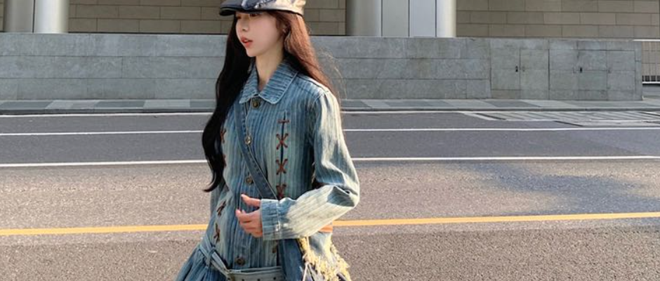 复古美式辣妹牛仔衬衫裙长袖连衣裙女秋季设计感小众百褶裙短裙子 牛仔裙