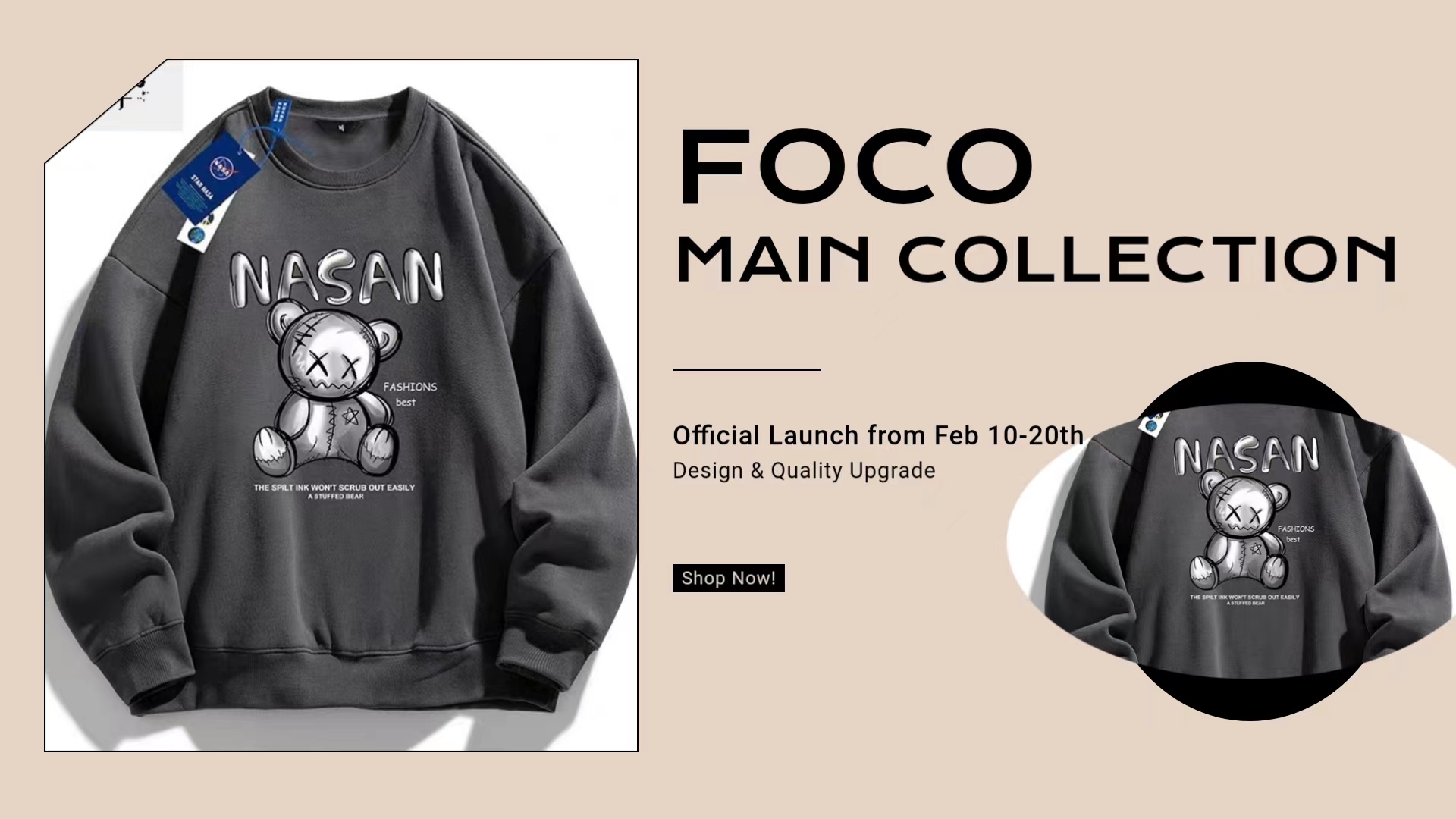 NONAME重磅卫衣男款春秋季小熊印花宽松圆领长袖美式情侣套头上衣服