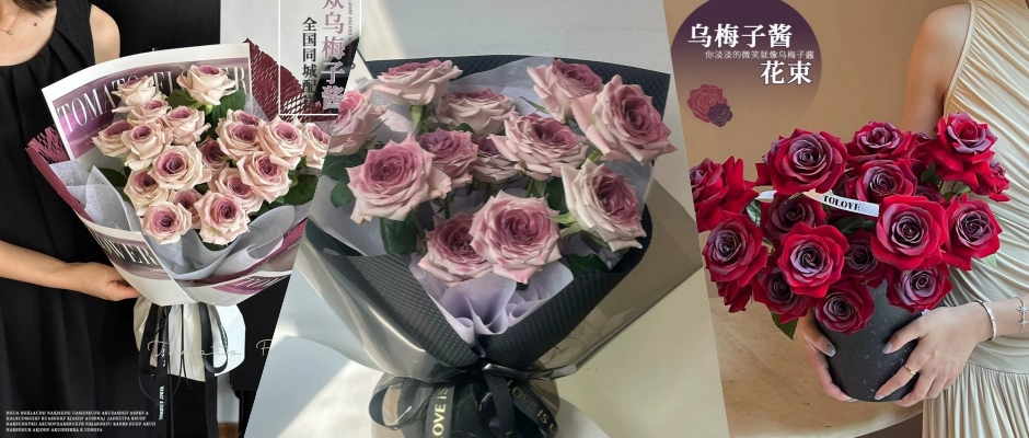 网红爆款乌梅子酱玫瑰花束曼塔紫玫瑰鲜花速递同城新疆北京上海广州店