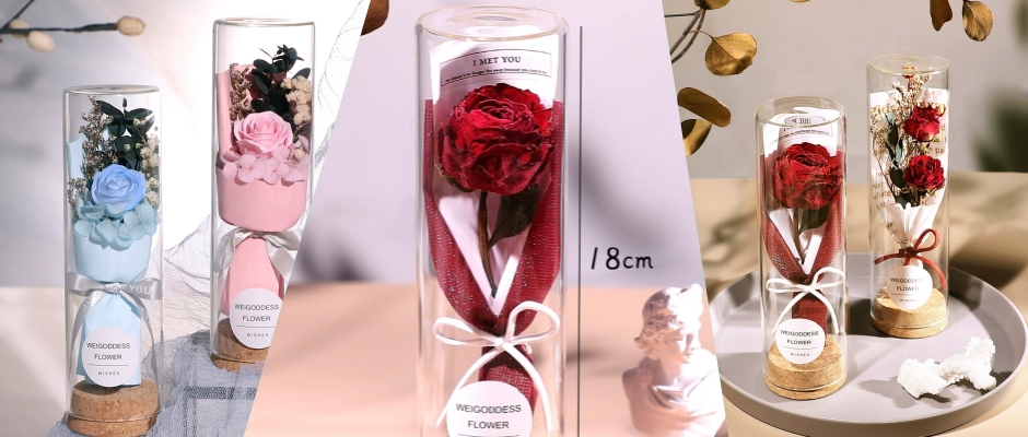 永生花礼盒玫瑰花送女友真摆件老师教师节生日礼物干花花束玻璃罩