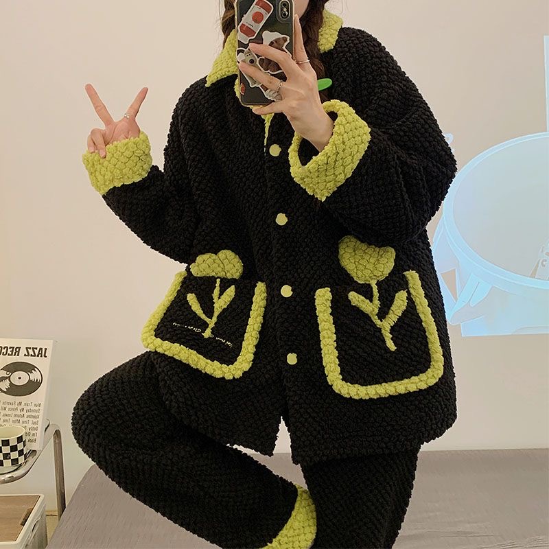 睡衣女珊瑚绒秋冬款2023年新款法兰绒套装加绒甜美加厚保暖家居服
