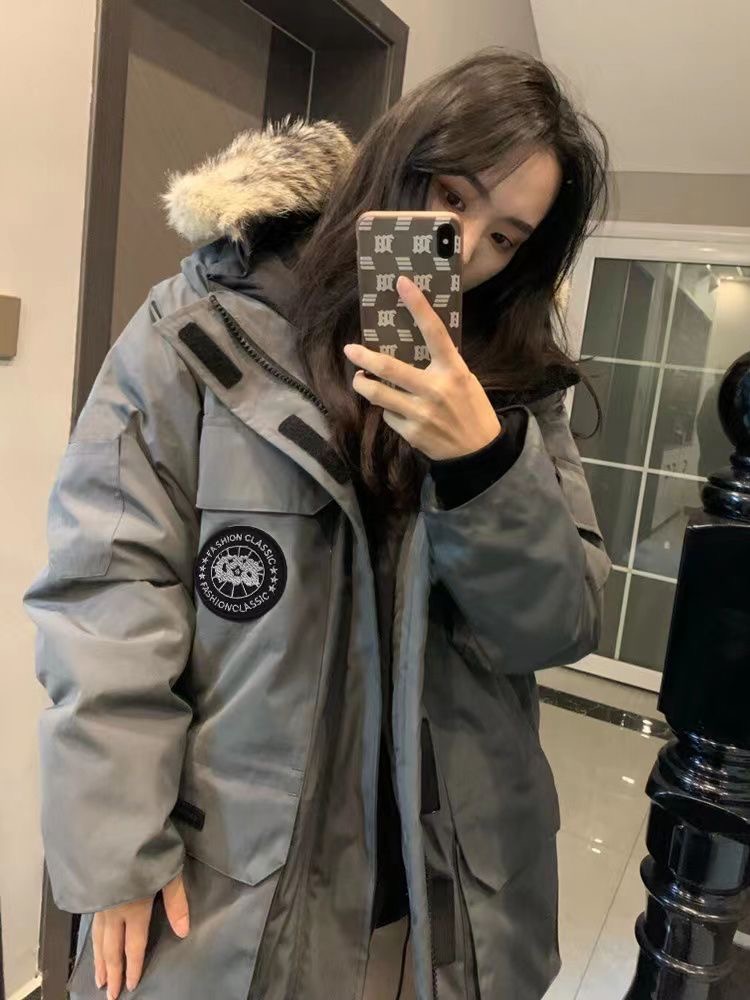 2023年秋冬季新款白鹅绒大毛领连帽羽绒服中长款男女情侣通穿保暖