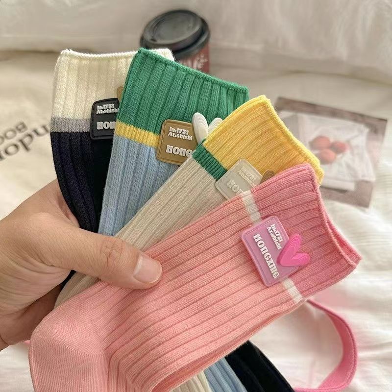 多巴胺颜色好看,最新款,纯棉 中筒袜
