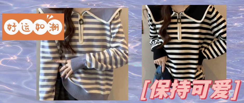 胖mm撞色黑白条纹针织衫上衣