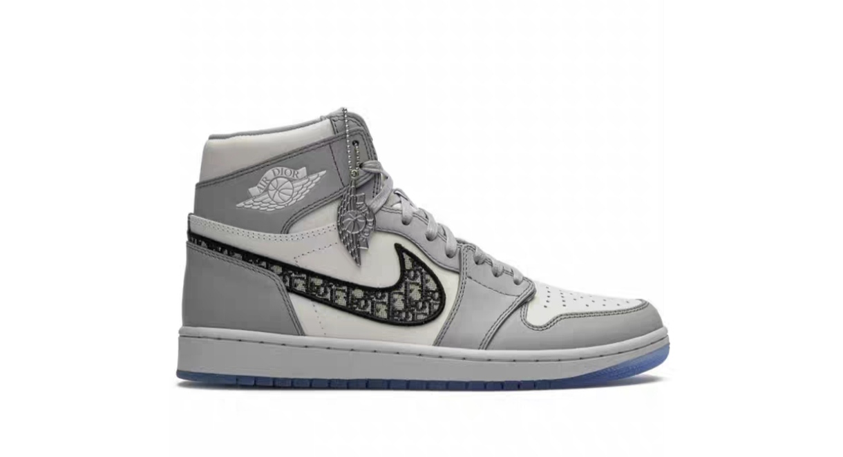 这款乳白色和浅灰色x Dior Air Jordan 1 High板鞋来自jordan。设计细节:圆头、橡胶平底、正面系带、鞋垫饰有标志、经典logo花纹、及踝。这款商品由高端运动鞋平台提供。该平台专业经营抢手运动鞋,并从世界各地搜寻紧俏款式。