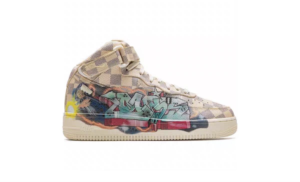 米色、帆布、涂鸦印花、Swoosh logo标志细节、圆头、正面系带、鞋舌有logo贴花、魔术贴踝带、鞋垫饰有标志、橡胶鞋底。这款商品由高端运动鞋和街头服饰交易平台提供。该平台主打抢手鞋履和服装,并从世界各地精心搜寻稀有紧俏的款式。
