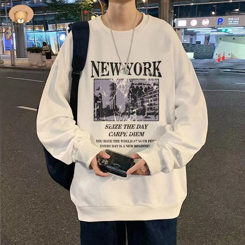 新款春秋圆领男士卫衣垂坠感慵懒宽松潮流百搭帅气无帽卫衣男薄款