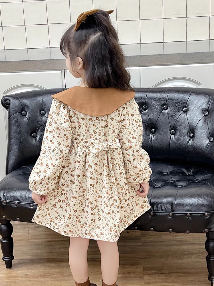 新贝母婴女童裙子春秋款2023新款儿童泡泡袖碎花裙春洋气宝宝春装连衣裙