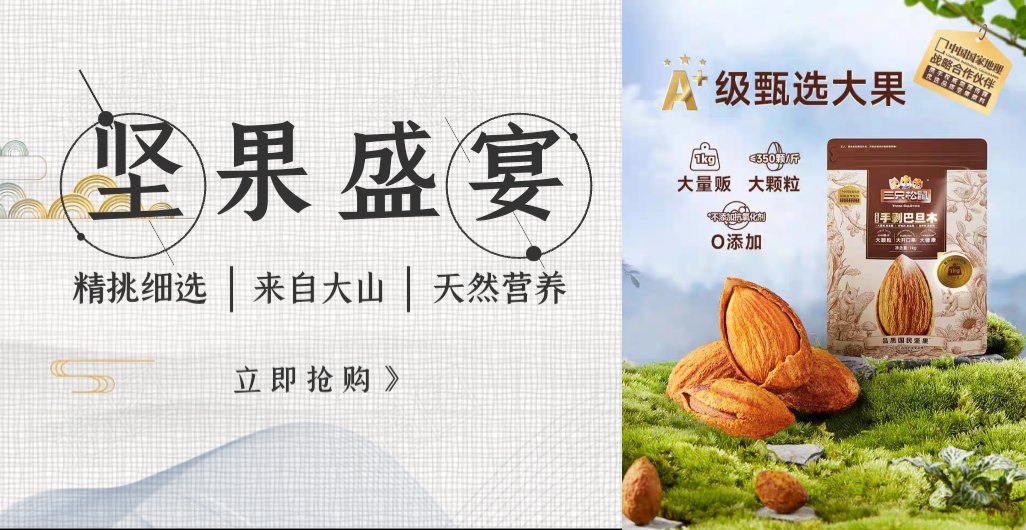 新货【三只松鼠_量贩手剥巴旦木500g】加州巴旦木坚果干果零食