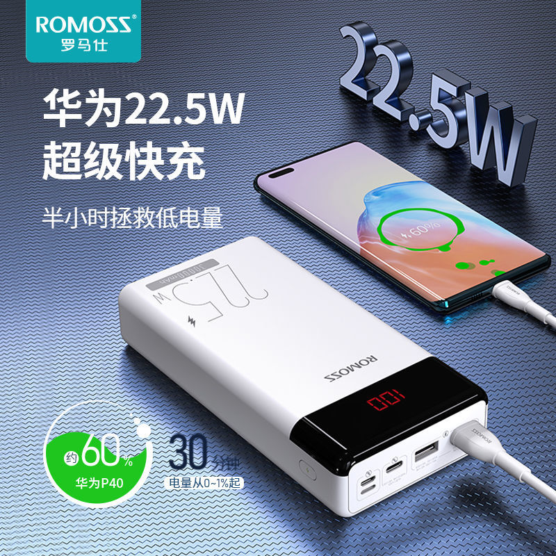 romoss充电宝全新款快充22.5wpd快充全新数显