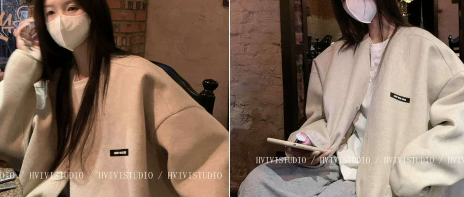 HVIVI宽松廓形休闲毛呢外套女2023秋季新款贴标设计小众简约开衫