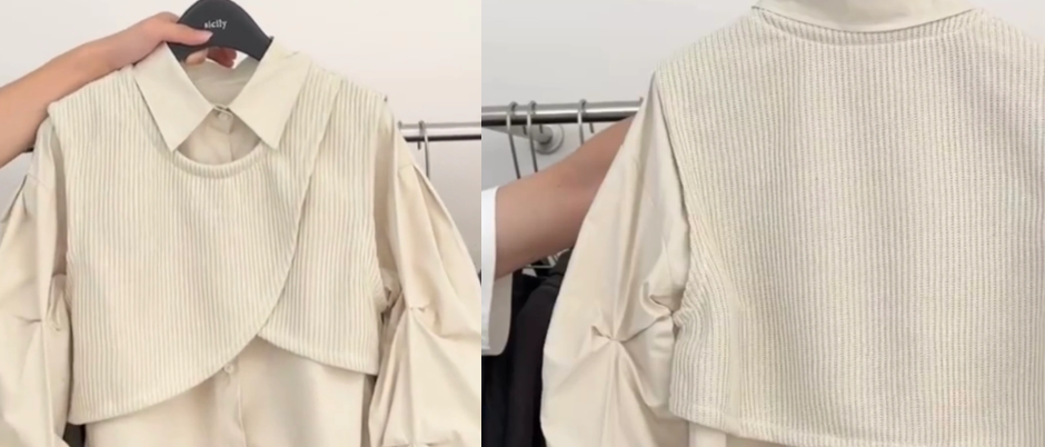 别致独特设计感上衣两件套女秋季新款堆堆袖衬衫叠穿不规则马甲