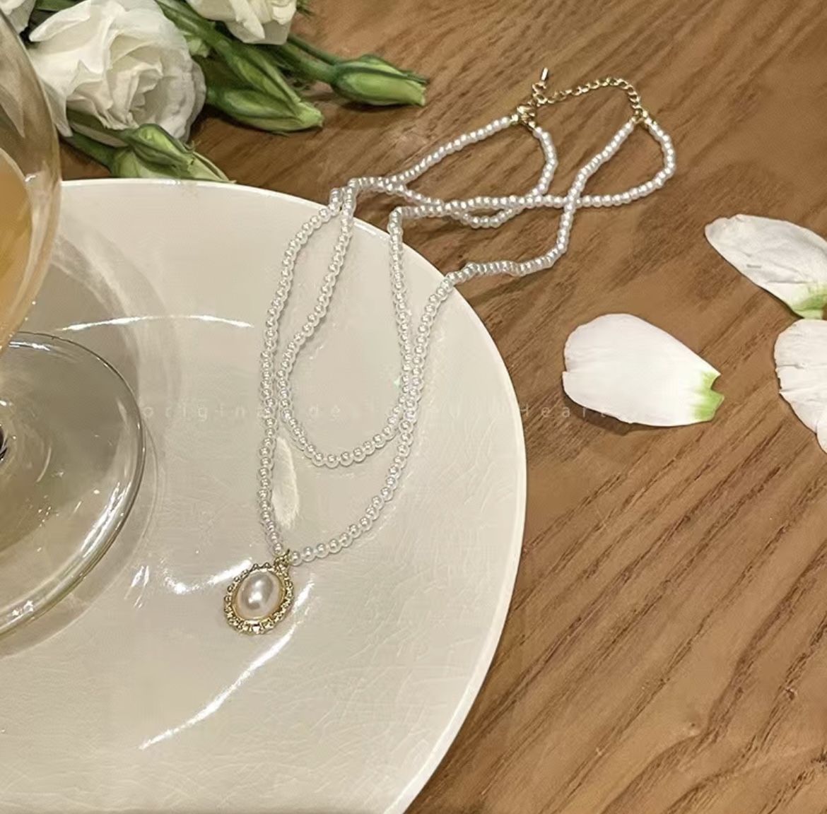 气质名媛~法式珍珠项链女ins轻奢高级设计感爱心锁骨链百搭颈链女