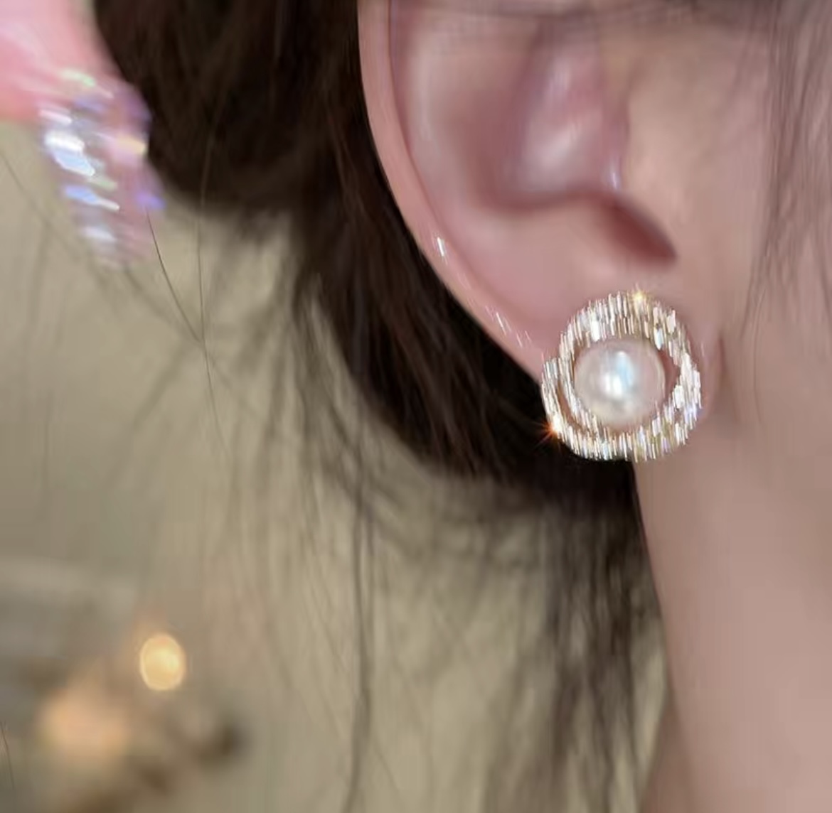 925纯银针耳钉2023年新款大珍珠耳环女ins轻奢高级感复古气质耳饰