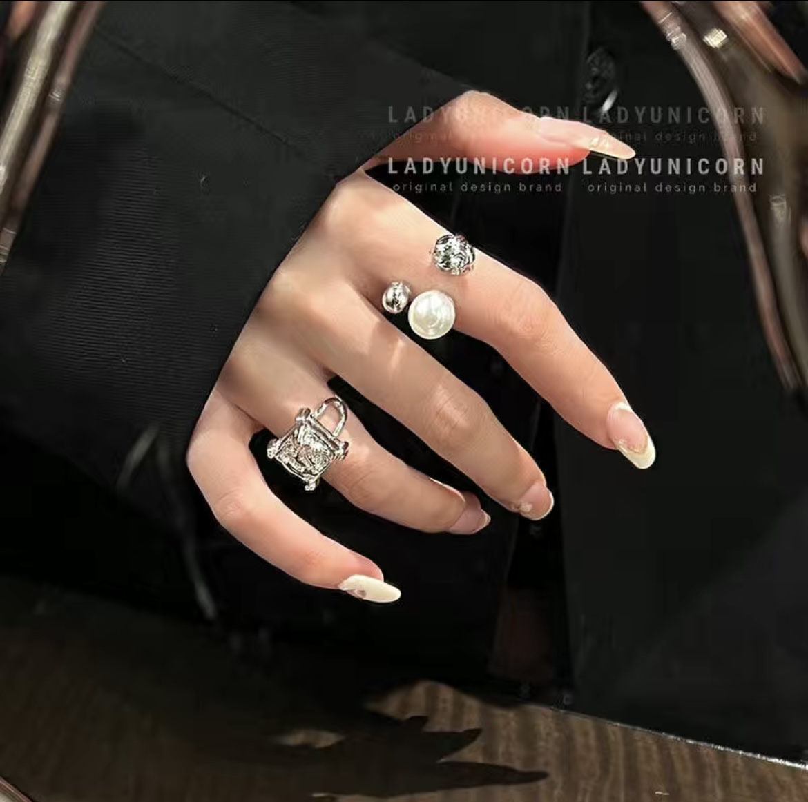 不规则珍珠戒指 弹力可调节气质ins小众设计超仙指环女韩国感