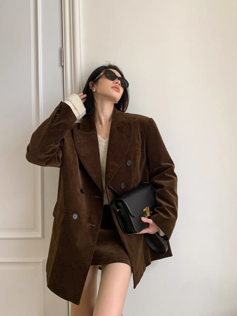 灯芯绒西装外套女春秋高级感穿搭气质休闲修身复古西服
