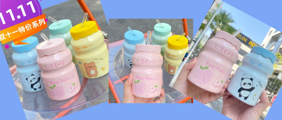 陶瓷杯,马克杯带盖家用早餐牛奶,可爱吸管水杯