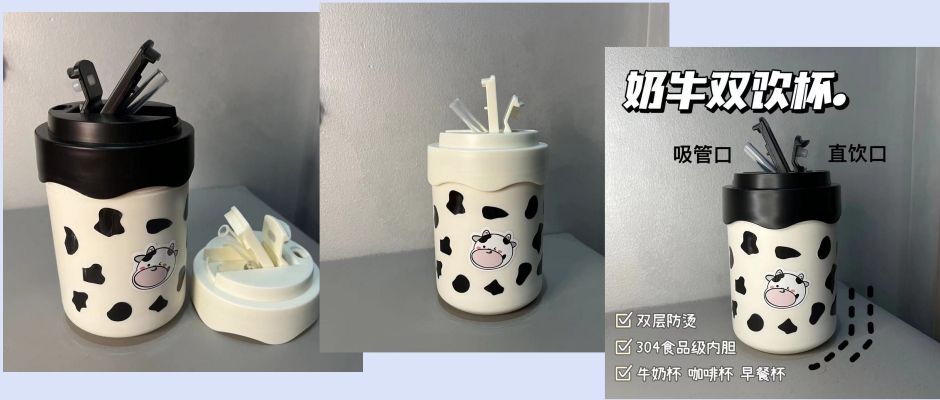 304不锈钢双层,高颜值学生防烫吸管杯,咖啡杯
