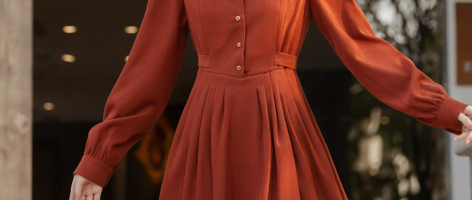 小众气质裙子美拉德穿搭秋季新款长裙女法式复古赫本风红色连衣裙