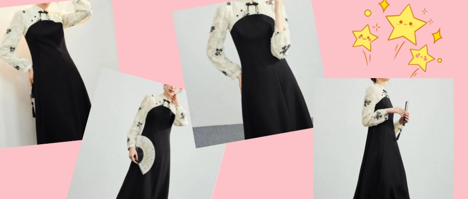 新中式改良旗袍连衣裙,极简的黑白撞色拼接设计,素静而不乏味,清秀而不寡淡,丰富立体层次感,将新中式的美学融于一身,淡雅脱俗。可包容各种身型。