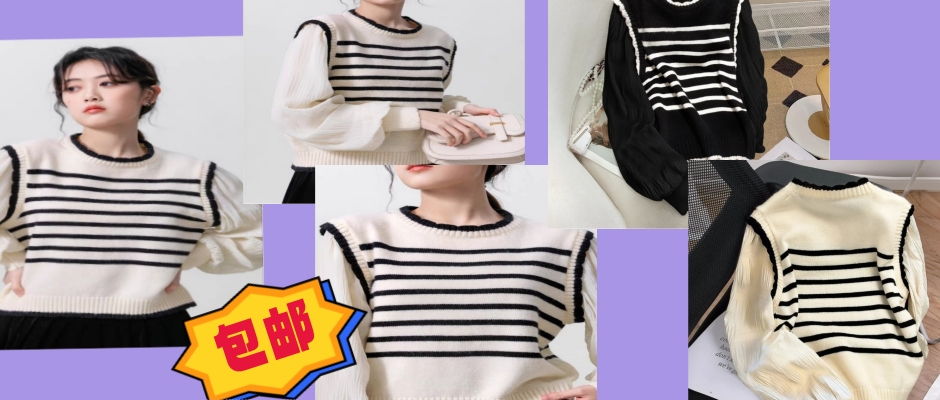米底黑条纹的设计, 于优雅中充满魅惑力 柔软细腻的面料, 穿着舒适自在。拼接甜美的泡泡袖设计, 自带时髦属性。