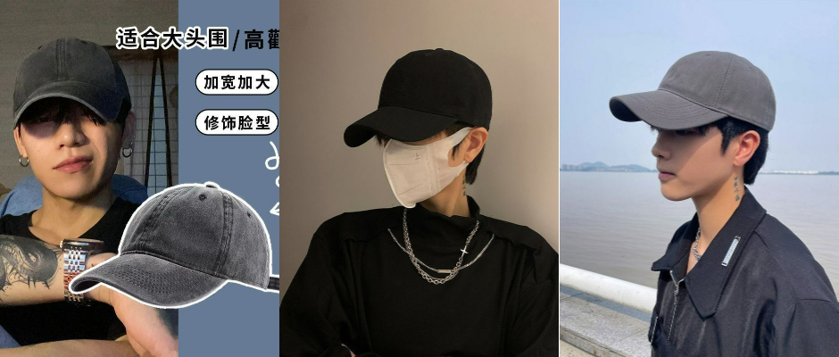 黑色帽子男士大头硬顶棒球帽潮牌日系四季鸭舌帽加深防晒遮阳帽夏 黑色 35