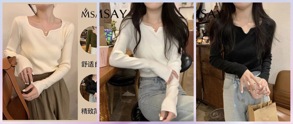 MSAY女秋冬软软糯糯长袖针织上衣2023新款打底内搭设计感针织衫潮 黑 s
