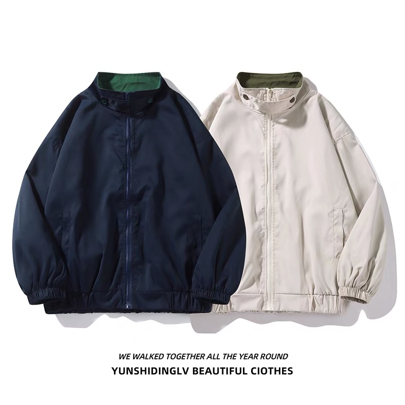 春秋季美式休闲运动夹克衫男生韩版潮流百搭bf潮外穿立领风衣外套
