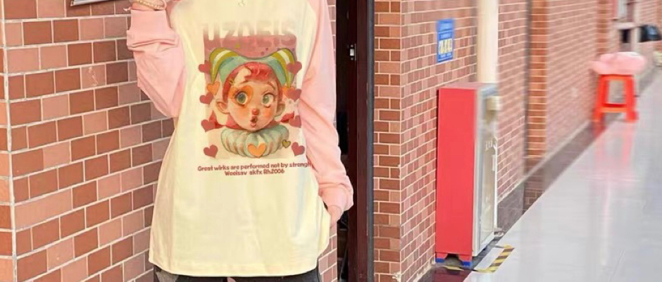 多巴胺穿搭正肩长袖T恤女2023早秋宽松美式潮牌别致设计插肩上衣