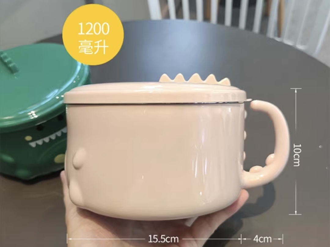 304不锈钢泡面碗保温饭盒儿童可爱卡通恐龙便当盒便携学生纯色