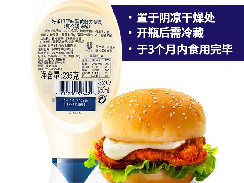赫尔曼低脂蛋黄酱低热量色拉酱三明治面包调味品LIGHT MAYONNAISE