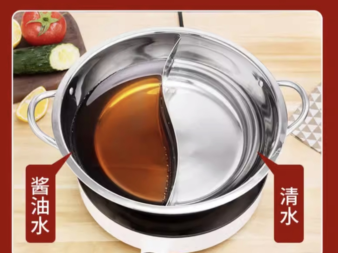 加厚不锈钢鸳鸯锅火锅锅盆麻辣清汤锅家商用涮羊肉锅具电磁炉专用