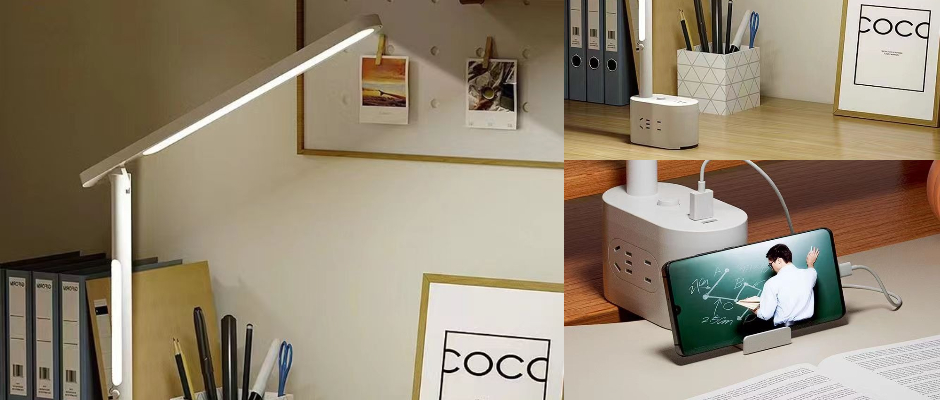 玖牧登台灯护眼学习儿童小学生宿舍大学生多功能LED灯卧室床头灯