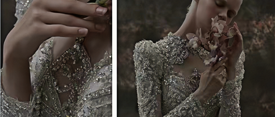 化妆造型 以人物面部表情的立体感为主,常用气派、低调的油画色彩体现妆面。再搭配新娘的婚纱与发型,选择不同颜色和花材的手捧花。