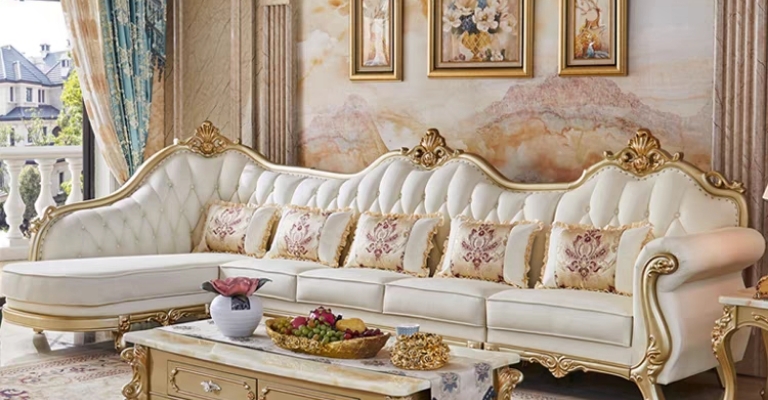 欧式真皮贵妃转角沙发高端大小户型组合客厅轻奢实木雕花L型沙发
