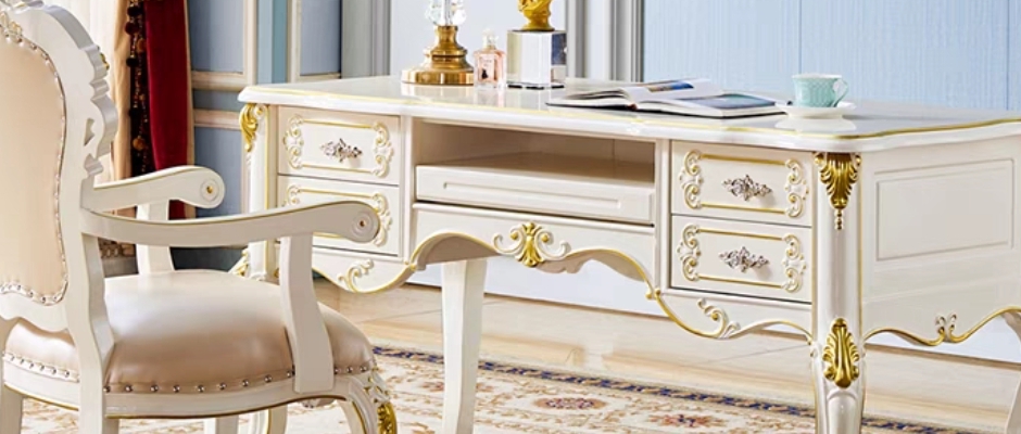 欧式书桌美式奢华全实木大书桌电脑桌书房办公桌描金描银一体书桌