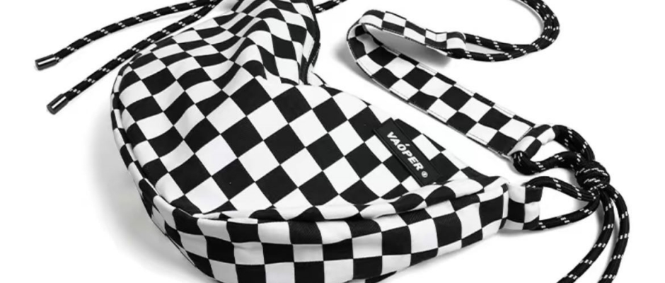 学院风潮牌通勤抽绳棋盘格大容量礼盒礼袋 棉质 单肩斜挎包