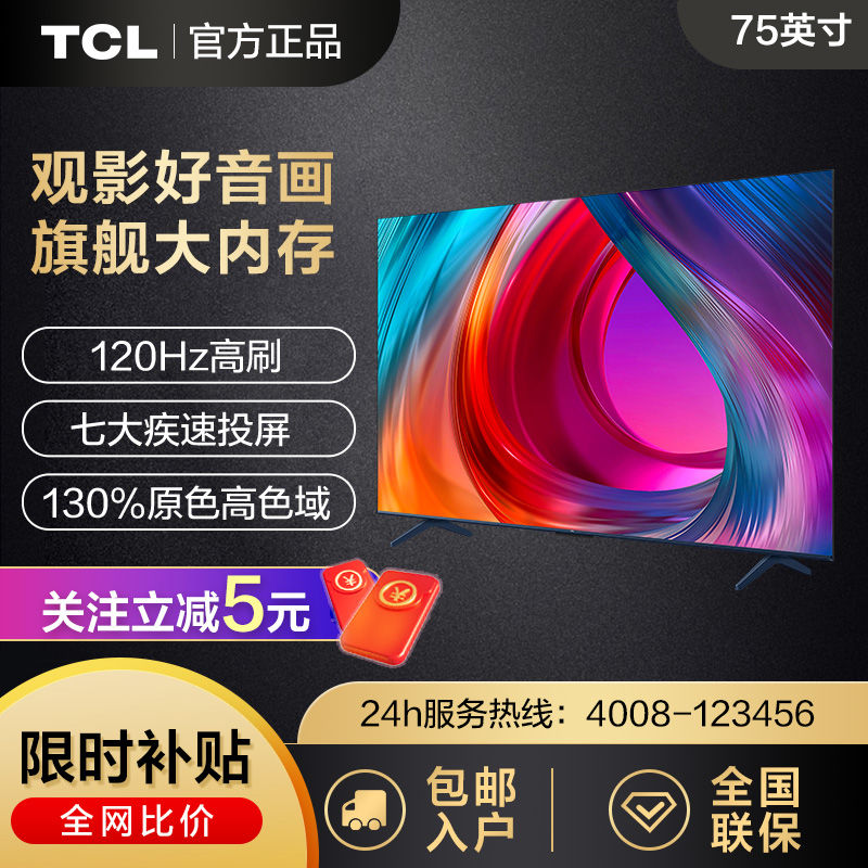 TCL电视 75英寸130%高色域4+64GB大内存120Hz高刷声控可投屏电视
