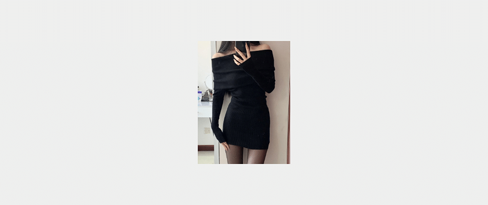 2023秋冬气质红色露肩设计收腰显瘦连衣裙女长袖针织包臀内搭裙子