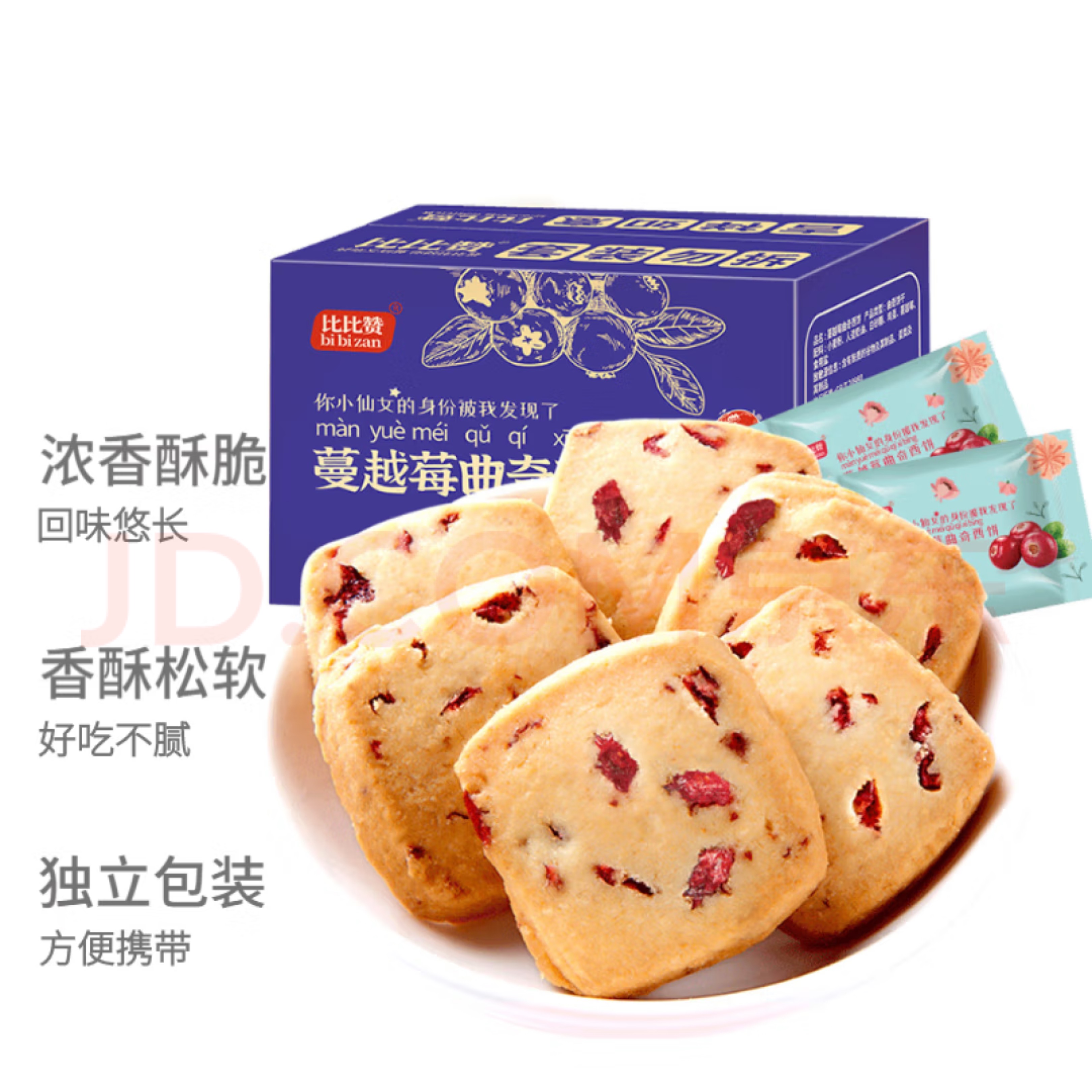 比比赞(BIBIZAN)蔓越莓曲奇饼干整箱800g网红早餐办公室零食小吃休闲食品