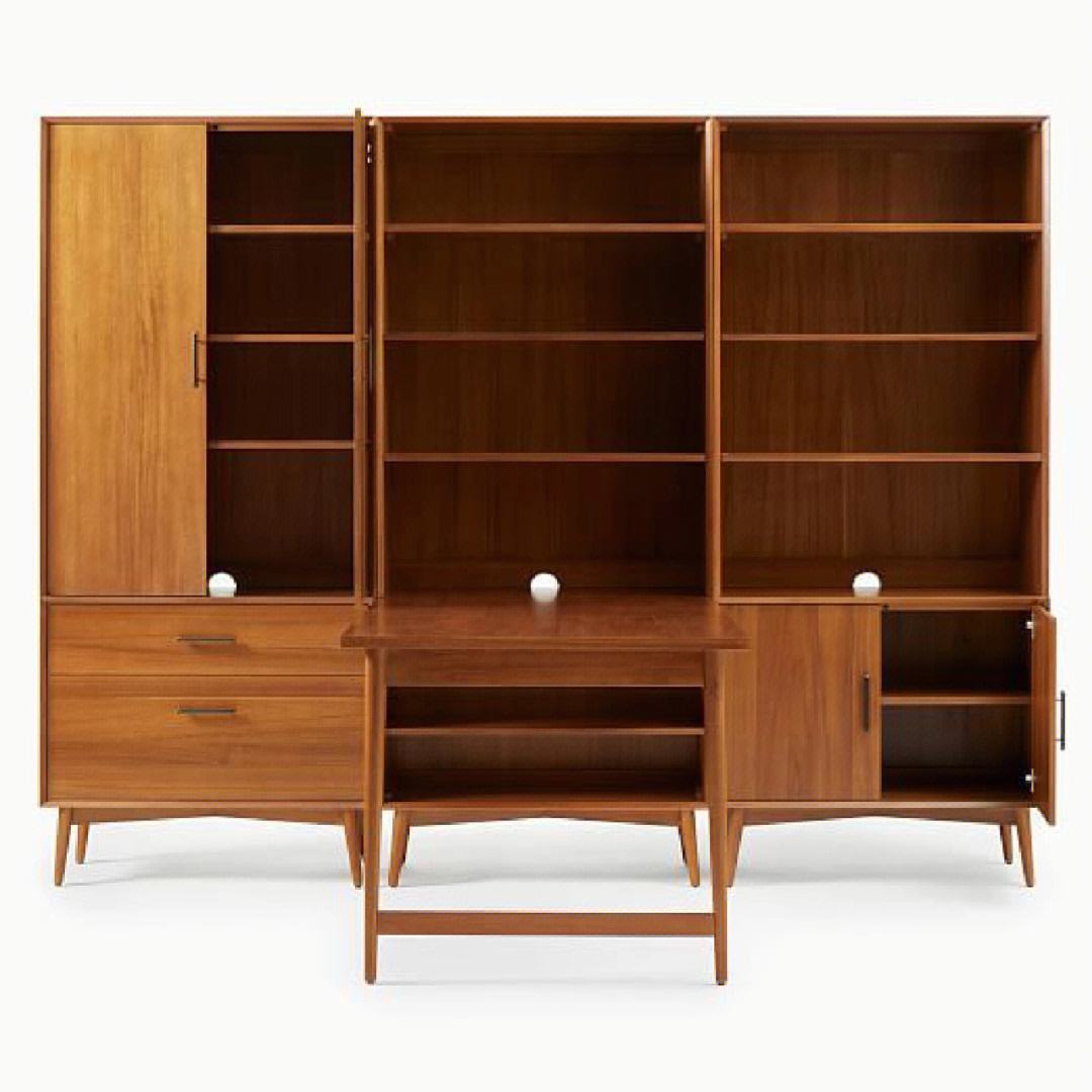 实木书桌书柜一体式