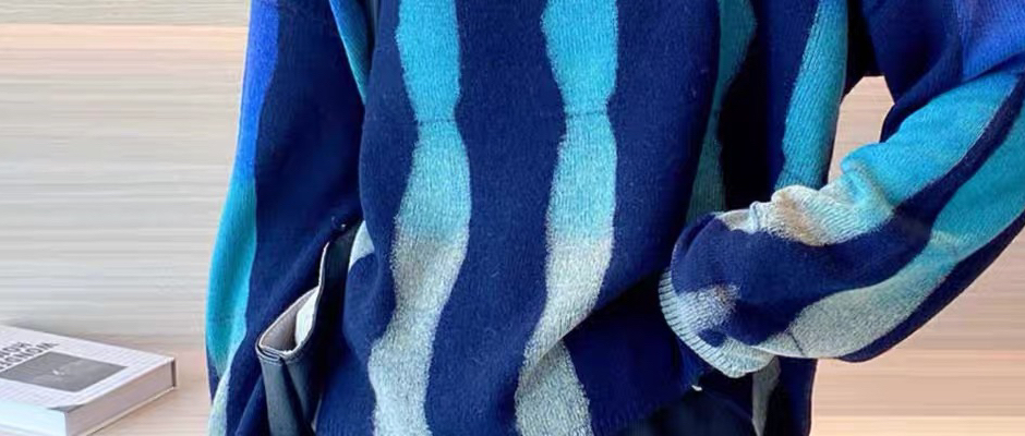 羊毛针织衫秋冬拼色设计感宽松休闲套头保暖加厚弹力长袖圆领毛衣
