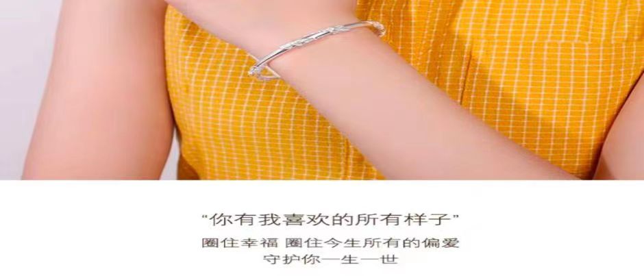 银手镯女纯银9999年轻款足银镯子实心银饰品轻奢小众生日礼物女生