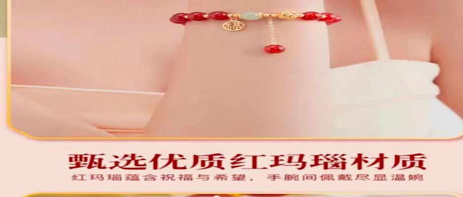 红玛瑙和田玉手链女轻奢小众精致925纯银福牌手串送女友闺蜜礼物