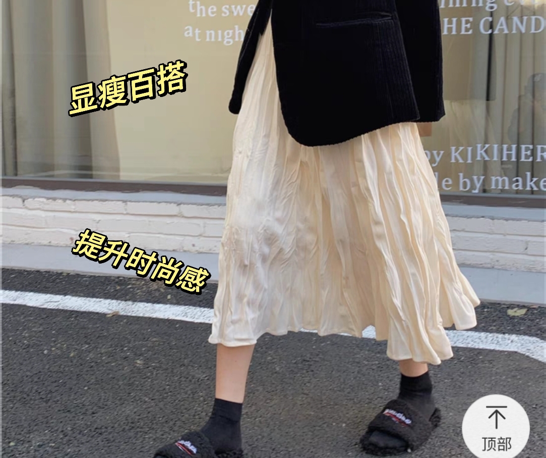 杏色褶皱半身裙女装秋季2023新款小众高腰垂感a字长裙小个子裙子