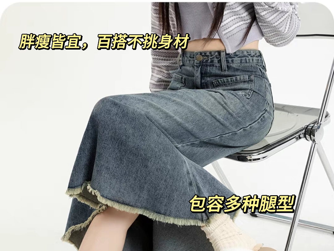 逃离地球复古牛仔半身裙女2023年秋季中长款高腰A字包臀鱼尾裙子