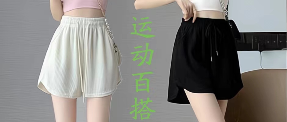 单/两件装 冰丝短裤女夏季薄款高腰宽松垂感三分运动阔腿休闲裤子