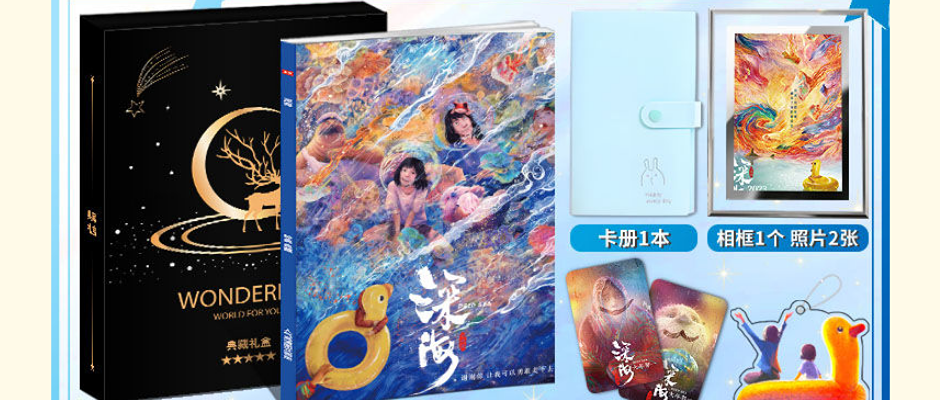 电影深海参宿南河画册集周边卡贴海报人形立牌钥匙扣相框徽章礼包