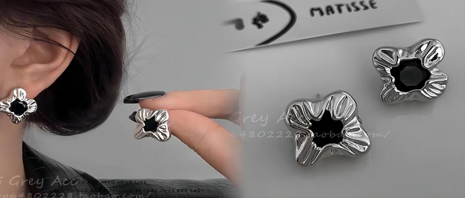 85度灰金属不规则花朵耳钉女甜酷辣妹s925银针耳环轻奢高级感耳饰