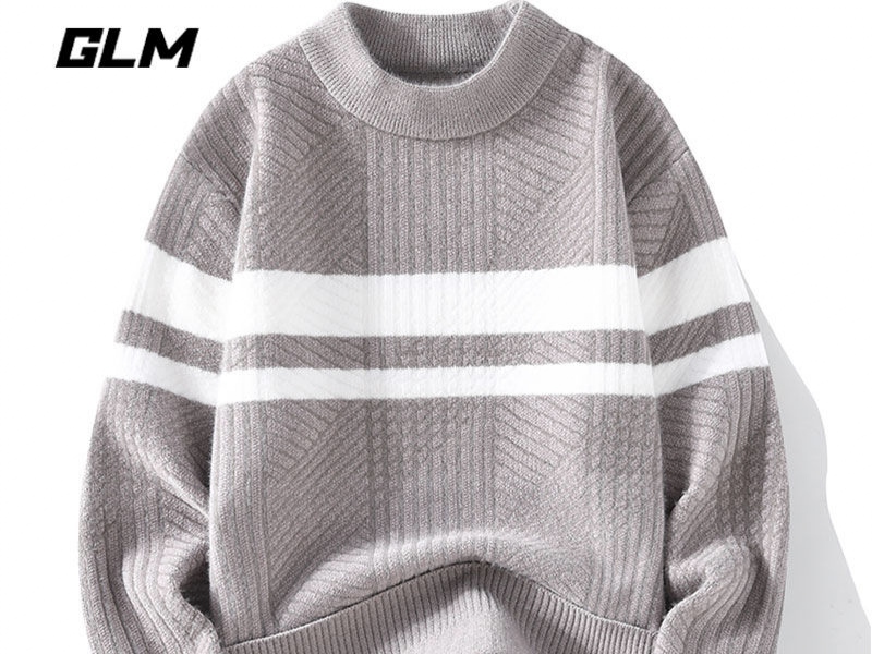森马集团品牌GLM软糯毛衣男秋冬季针织衫潮牌宽松拼色套头线衣男